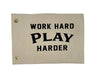 Elevate your space with this motivational "Work Hard Play Harder" canvas flag, a perfect blend of inspiration and style. Crafted from heavyweight canvas includes gold grommets for hanging.